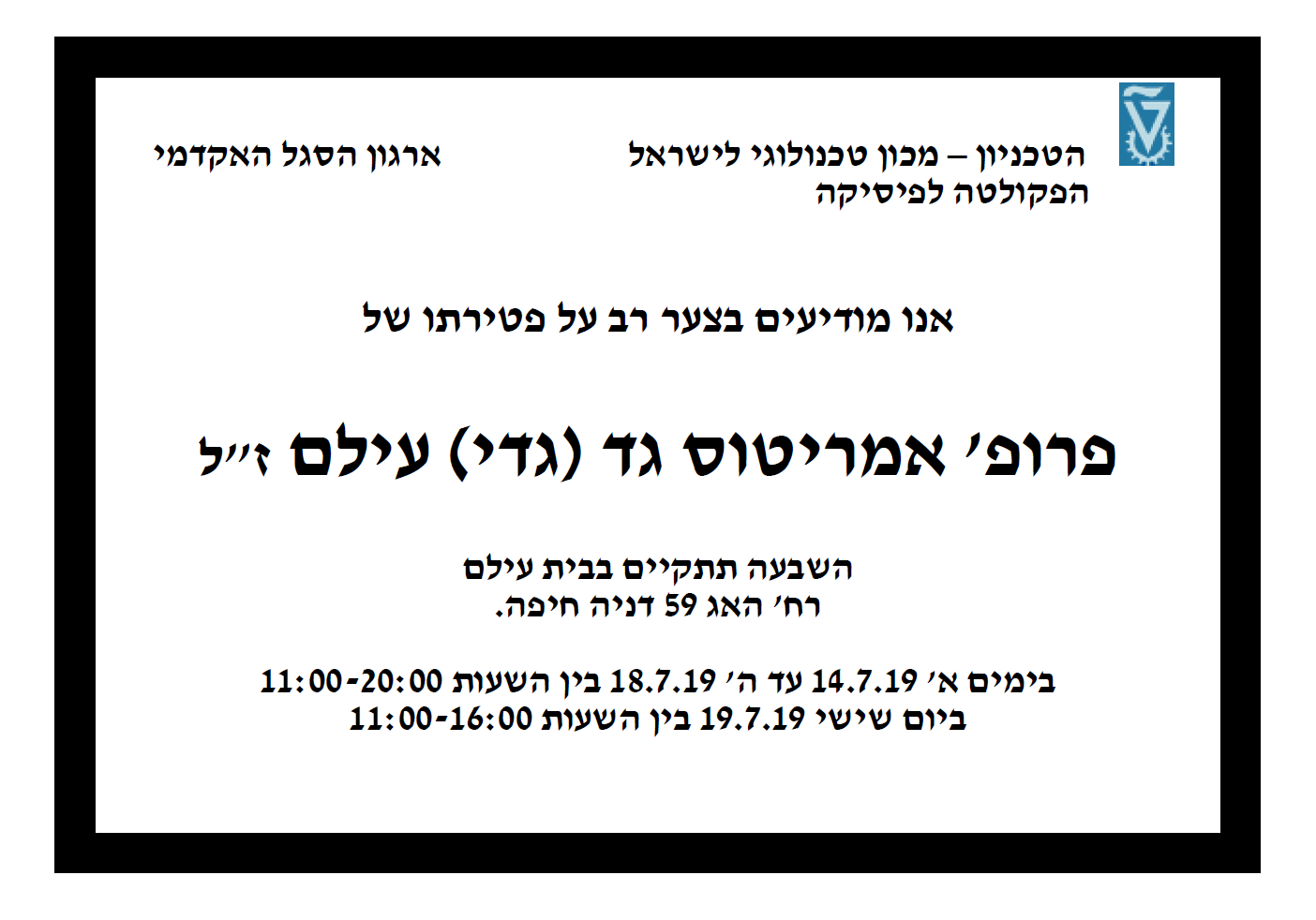 We are mourning the death of a dear friend and distinguished physicist, Prof. Gad Eilam, who passed after a serious illness.