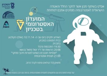 ארוע פתיחת המועדון האסטרונומי בטכניון, יום שני, 10.11.2014, באולם הקולנוע בבית הסטודנט בטכניון